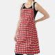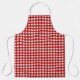 Great color and even though I ordered the kid size, it covers well enough to use during the holidays. I am not a big woman and prefer a shorter apron. I stand 5"6" and the length of the garment goes to mid-thigh. The tie straps fit well at my waist and even though there is no neck strap adjustment, the opening is plenty big enough. I am happy with the size and fit. I am sharing my apron with my 10 year old grandson, too! The color is vibrant and looks good, as shown on the website. The stitching looks strong and reinforced. Photographed is front side and back side of the apron, reinforced straps and coloring. My phone camera may not be the best at showing the details.