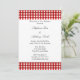 Red and white gingham pattern bbq invitations. Two shades of red stripes.