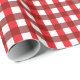 Red and white gingham pattern wrapping paper. Two shades of red stripes.