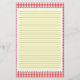 Red and white Gingham Stationery with optional lines. Use the customize it button to change the background color behind the lines. Delete the lines for the unlined option.