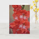 My original photograph is featured on this note card, consisting of red and white Gladiolus flowers in a garden and close up to show the details of the flower. This card is blank inside and can be used for any occasion.