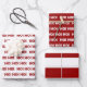 These wrapping paper sheets features one sheet with red Ho! Ho! Ho! on white background, one sheet with white Ho! Ho! Ho! on red background,and the third sheet in matching red and white stripes.