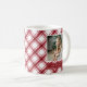 This modern red mug features a watercolor red and white buffalo check plaid pattern with text and 2 photos for personalizing. Find matching items in the Christmas Watercolor Buffalo Plaid Holiday Cards.