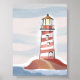 Red and White Lighthouse | Beach Ocean Watercolor Poster