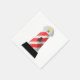 A really cool looking lighthouse design. This lighthouse is red and white striped and really makes for a great effect. This lighthouse has a black base, the red and white striped body and then the light at the top. This red and white lighthouse design looks great on these paper napkins. Perfect for yourself or as a gift