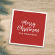 A merry Christmas party napkin, with a red and white, calligraphy script design, a classic holiday parties design, Xmas celebrations, a simple, minimalist, typography style, a minimal modern family name party supplies.