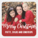 Use your favorite family photo to add a special touch to your Christmas cards. In this case Merry Christmas is written across the bottom of the photo. Then your names are added below. The bottom border is holiday red and it really lets Merry Christmas and your names stand out. Easy to change the photo and text. you can also change the red background.