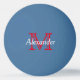 A fun blue ping pong ball that you can personalize with your choice of name and initial in classic red and white. Makes great personalized party favors.