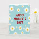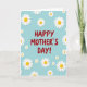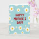 This card features the words “HAPPY MOTHER’S DAY!” centered in rich crimson, standing out with a confident, loving energy ❤️. All around the message, white daisy-like flowers with sunny yellow centers drift across a soft sky-blue background, like a bouquet scattered with care. The blooms vary in size and spacing, creating the sense that they’re gently floating and keeping the greeting company. Some flowers sit close to the edges and a few extend beyond the border, suggesting the pattern continues off the card. The cool blue backdrop balances the warm red lettering, giving the scene a calm, affectionate feel, like a quiet hug 🌼. A faint shadow under each blossom adds a slight lift, making the petals look layered and touchable. The text stays in the middle while the flowers form a loose frame around it, with the brightest whites and yellows sprinkled most densely near the top and sides. The background remains an even, airy blue behind the crimson letters, while the white petals and yellow centers repeat across the front in a scattered arrangement.