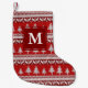 Red and White Nordic Alpine Fir Trees Monogram Small Christmas Stocking