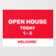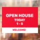 Looking to sell or rent your home? This eye-catching and professional looking window cling sign is perfect for letting everyone know about your open house. It is ready to be personalized with your details. It features a bold red and white design.