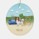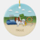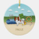 Red And White Papillon With Agility Equipment Ceramic Ornament