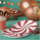 Made to look like a round, red and white striped peppermint candy, these festive holiday paper plates may tempt you to take a bite. From my original digitally-created image.