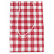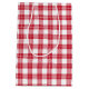 Skip the hassle of wrapping and deliver your present in a stylish gift bag featuring a red and white plaid pattern made of red, white, and light red squares with thin white lines through the darker squares.