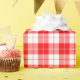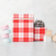 A wrapping paper designed with a red and white plaid pattern. Customize the white background among other options.