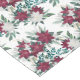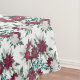 This Holiday theme table cloth features a pretty pattern of burgundy red and white poinsettia blossom bouquets embellished with Christmas greenery. Gold centers on the blossoms add extra interest and a bit of sparkle. The pattern is placed on a snow white background. Beautiful and festive for your Holiday table!
