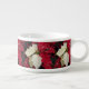 Serve up a warm, holiday meal in this chili bowl that doubles as an oversized mug for hot drinks and cereals that features wrap-around pattern of repeating photo images of a red and white, variegated Poinsettia, otherwise known as the Christmas Flower. A fun, floral design for the holidays!