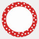 Red and white polka dot label