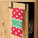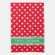 Red and White Polka Dot With Green Personalized Kitchen Towel