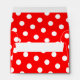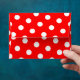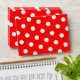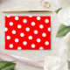 White dots against a bright red background. The white polka dot pattern is tilted at a diagonal slant.