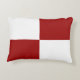 Classic accent pillow features two red rectangles and two white rectangles in a checkered pattern in this clean digital design.