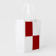 Two red rectangles and two white rectangles form a checkered pattern in this clean digital design.