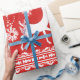 Red and White Reindeer Floral Modern Christmas Wrapping Paper