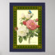 Botanical Art painted in the 1800's by famous French artist Pierre Redoute This unique version combines two vintage illustrations; Tea Roses and Pink Rose of Orleans. Two colorful butterflies light on the flowers. The bouquet is framed with elements from antique manuscripts. The names of the roses as well as the artist are written in script at the bottom of the artwork.