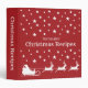 Keep your Christmas recipes organized with the help of this binder. The design features Destei's festive silhouette of a Santa Claus in a sleigh with three reindeers and some stars. There are personalizable text areas on the front and on the spine. The color scheme is red and white.