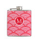 Red and White Scallop Pattern Monogram Flask