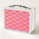 Red and White Scallop Pattern Monogram Metal Lunch Box