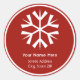 A sticker featuring a white snowflake over a red background. White circle surrounding design. Personalize with your name and address under snowflake. Look for matching items at Jill's Paperie.