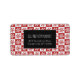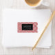 Return address labels with a seasonal design - repeating pattern of red and white snowflakes. Layered over top is a black box with a white border. Customize with your own name and address info.