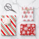 Red And White Snowflakes And Holiday Striped Wrapping Paper Sheets