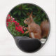 Red and White Squirrel with Red Flower Bush Gel Mouse Pad