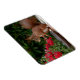 A beautiful snapshot of nature and its wonderful furry creatures. Featuring a red squirrel posing near some small red flowers.