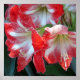 Three huge, red and white stripe Amaryllis blooms. Hang in a floral grouping with the Columbine and Clematis.
