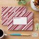 A red and white candy cane stripe on the exterior of the envelope. The front contains white space to add the address of your recipient. A box on the front of the card contains the message: Kindly Deliver To. You can then add the recipients address. Send joy while delighting your recipients with these bright and colorful envelopes that will stand out in a crowded mailbox. They match two of the holiday cards available in my store.