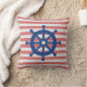 Red and White Stripe Nautical Throw Pillow with Blue Ship's Wheel