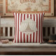 Transform any space into a big top with this Whimsical and Unique circus tent pillow. Featuring a classic Red and White Striped background and a beautiful Vintage illustration, it is a standout piece in our circus pillows collection. Perfect for those seeking The Greatest Adventure in nursery styling or a bold accent for a playroom.