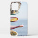 Red and white surfboard in brown wooden rack Case-Mate iPhone case