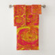 Beautifully patterned bath towel set using mesmerizing swirls of red, orange and yellows. Pair it with matching bath decor.