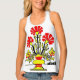 Women's All-Over Print Racerback Tank Top, White Piping, S