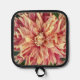 Safely handle baking trays, cookie sheets and muffin tins from the oven with this pot holder with black trim that features the photo image of a variegated Dahlia bloom with shades of reds and yellows. A lovely, floral design! Select your pot holder backing style.