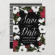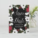 Customizable save the date announcement featuring white and red flowers and modern calligraphy script. This is a part of a wedding suite "ANEMONE BLOOMS" - matching items are available.