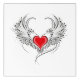 Artistically painted red heart with angel wings gray, decorated with black smooth contour.