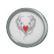 Artistically painted red heart with angel wings gray, decorated with black smooth contour.