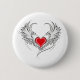 Artistically painted red heart with angel wings gray, decorated with black smooth contour.