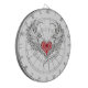 Artistically painted red heart with angel wings gray, decorated with black smooth contour.