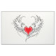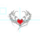 Artistically painted red heart with angel wings gray, decorated with black smooth contour.